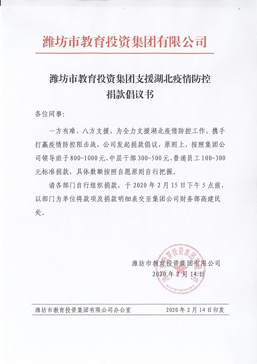 一方有难、八方支援,为全力支援湖北疫情防控工作,携手打赢疫情防控阻击战,2020年2月14日下午,金年会官方体育登录入口向公司全体员工发出抗击疫情爱心捐款倡议。全体员工踊跃参与,积极响应,通过现场捐款和手机转账等方式,募集资金29215元,充分表达了对湖北疫情防控工作的支持。