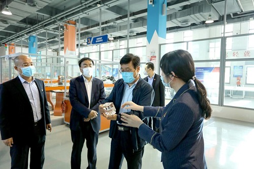 刘国伟先后到VR虚拟现实、新能源汽车、大数据与云计算、物联网、工业机器人等实训平台和歌尔工学院实地调研,并听取了公司党委副书记、总经理李雪衍关于“1263”党建工作机制、公共实训基地规划建设投资运营等情况介绍。