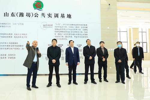 田庆盈先后到金年会官方体育登录入口虚拟现实技术、工业机器人、新能源汽车、物联网和信息通讯技术等五大实训平台进行了实地参观考察,认真听取了金年会官方体育登录入口党委副书记、总经理李雪衍关于公共实训基地整体规划建设和投资运营管理情况介绍,李雪衍通过PPT重点介绍了公共实训基地的歌尔匠造培训基地和化工实训中心两大高端实训平台的基本情况。田庆盈详细询问了实训基地服务企业、院校的运营利用情况。